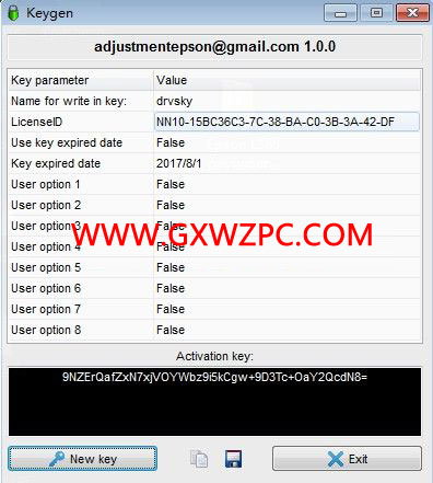 點擊New key生成一個注冊碼