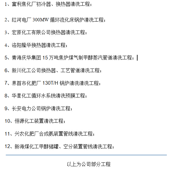 化學(xué)清洗業(yè)績